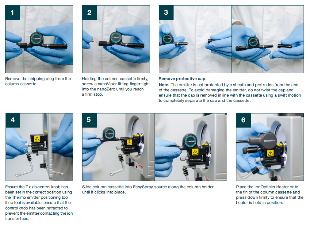 This article demonstrates how to install an Aurora XT column on your UHPLC system with the Thermo Scientific EASY-Spray source using either the HeatSync Controller or IonOpticks Heater Controller. It includes video and step-by-step guidance from our User Guide covering:
